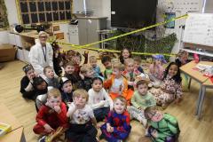 The children have become detectives for the day, working together to uncover clues, solve puzzles, and figure out which book each crime scene is linked to — and of course, who committed the crime!